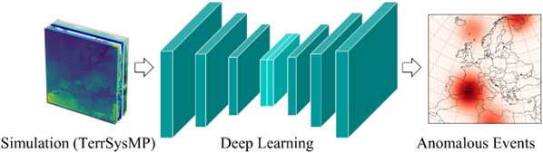 For predicting extreme events such as agricultural droughts or wildfire, we will train deep neural network on TSMP data as well as remote sensing data. The deep networks will be first trained using full supervision, i.e., they will be trained by taking the generated data as input and minimizing the difference between the predicted and annotated extremes (e.g., wildfire or droughts). In a second step, we aim to train the networks unsupervised in order to identify anomalous events in simulated data.