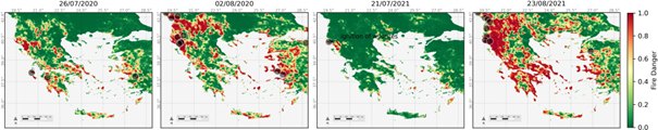 In collaboration with B03, we developed a deep learning approach that predicts when weather conditions have a high tendency to cause an extreme event such as large wildfire events.